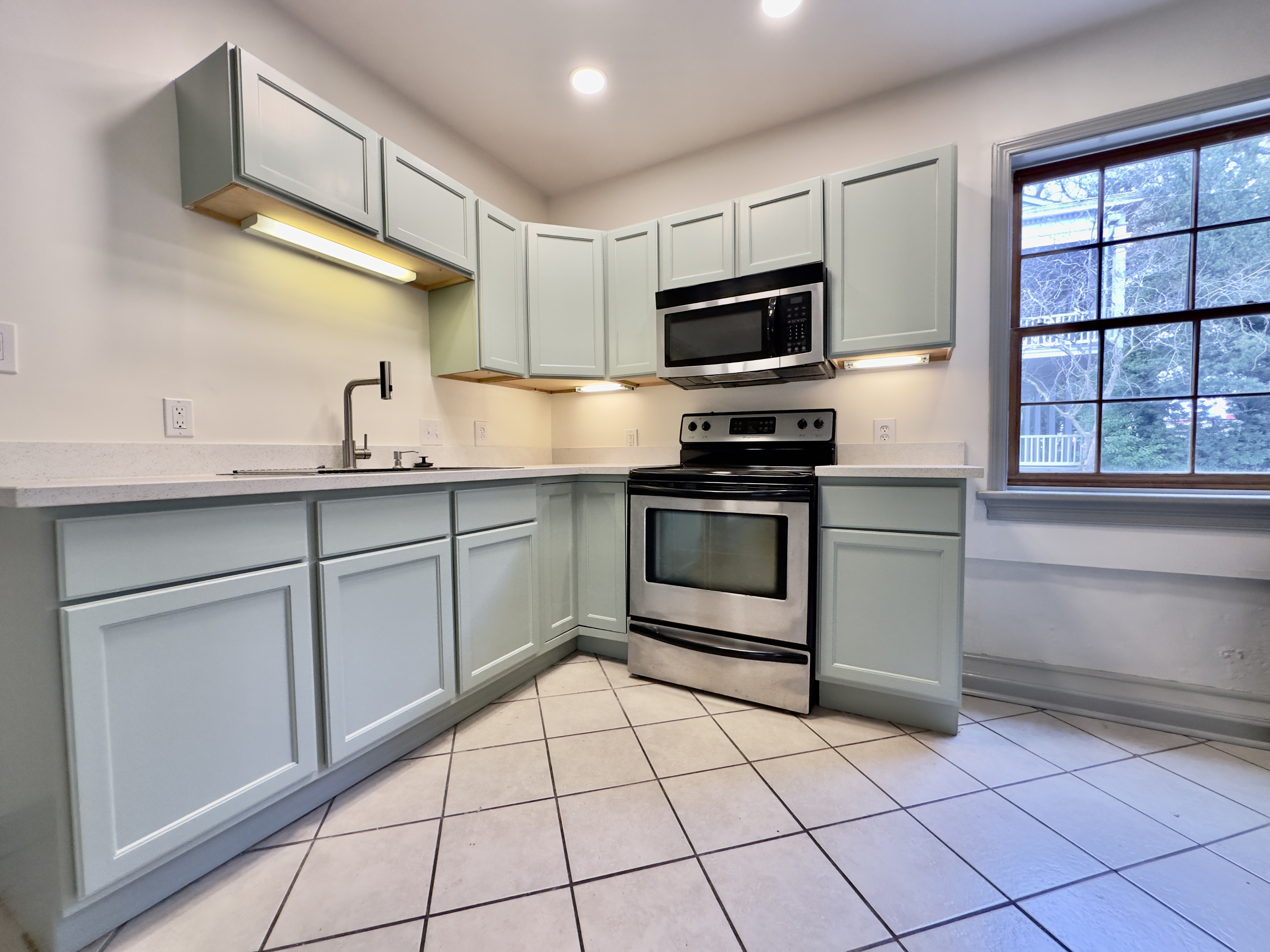 Beautifully renovated 2-bedroom, 2-bathroom residence, just steps from the vibrant energy of Magazine Street. Nestled in one of New Orleans' most sought-after and walkable neighborhoods, this home places you within easy reach of renowned restaurants, boutique shopping, cafés, and local favorites. Inside, the thoughtfully designed open-concept living and kitchen space creates an inviting atmosphere filled with natural light. Clean lines, recessed LED lighting, and ceiling fans throughout enhance the modern aesthetic, while tile flooring throughout the home adds both style and ease of maintenance. The beautifully updated kitchen features elegant quartz countertops, a large deep farmhouse-style sink, and stainless steel appliances including a refrigerator, range, and built-in microwave, all designed to blend form and function. A washer/dryer combo is also included for everyday convenience. Both bedrooms are generously sized and each features its own private en-suite bathroom, offering a level of comfort and privacy that is ideal for roommates, guests, or flexible living arrangements. This home offers the rare combination of modern updates, thoughtful design, and an unbeatable Lower Garden District location, making it a truly exceptional place to live. Extremely pet-friendly property with no pet restrictions or weight limits, a rare find in this area.